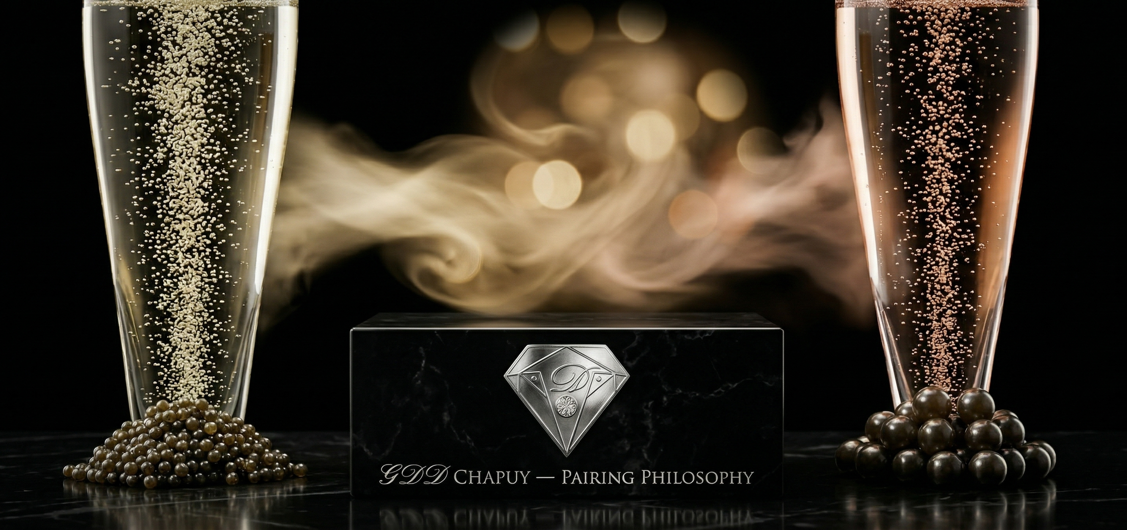 The chalk-rich minerality of GDD CHAPUY Oger Grand Cru Chardonnay meets the saline depth of caviar. The richness of the pearls is lifted by acidity, while the Champagne’s structure is grounded by texture. This interaction is not static. It evolves with each selection.